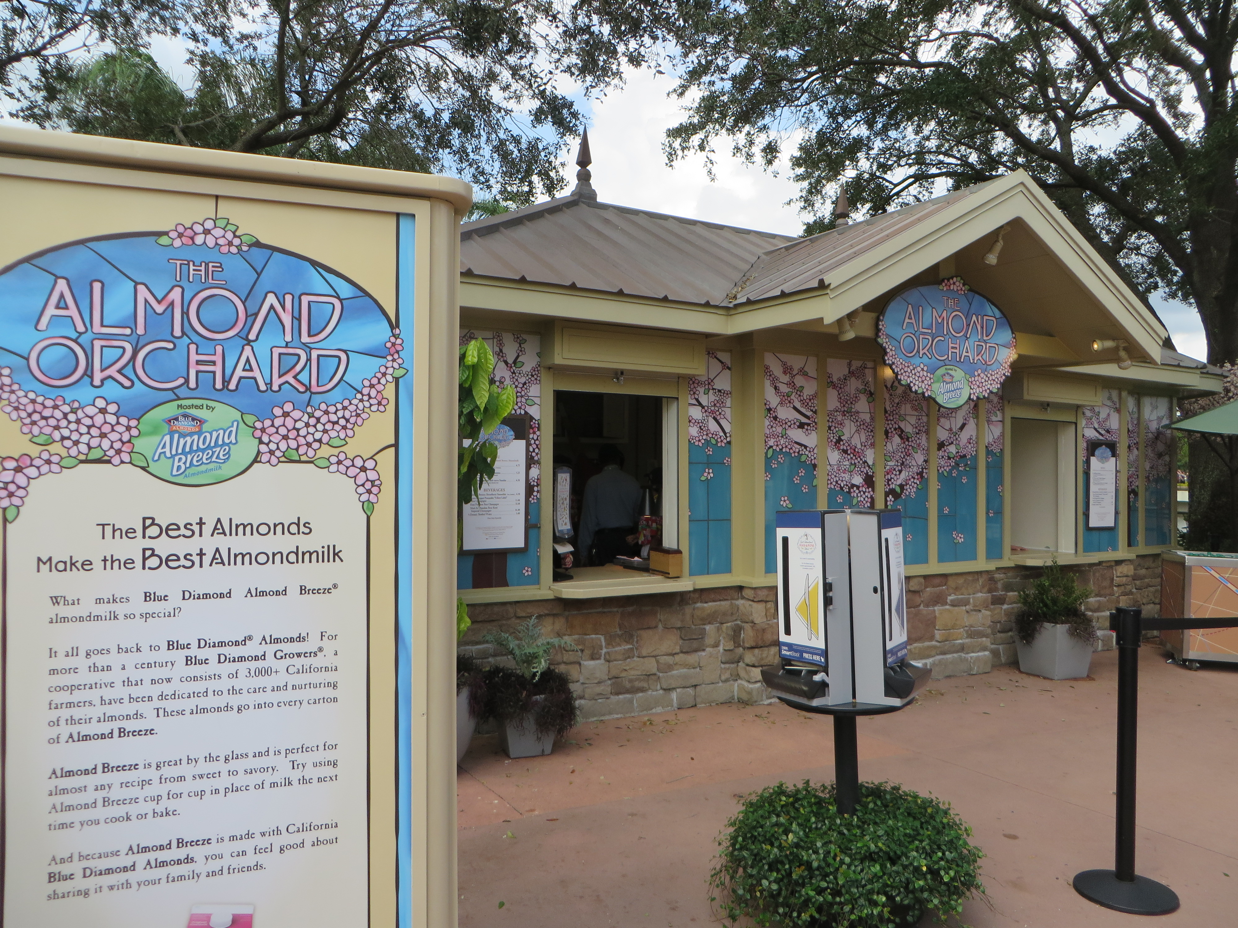 Located to the right when entering the World Showcase, the Almond Orchard booth is hosted by Blue Diamond Almond Breeze (you know the Almond Milk brand). All of the items at this stand are made with Blue Diamond Almond Breeze Milk. My mom tried the Fire Roasted Tomato Hummus which came with almonds on top and a Blue Diamond cracker on the side. She really enjoyed this dish and thought it was the perfect start to the festival.