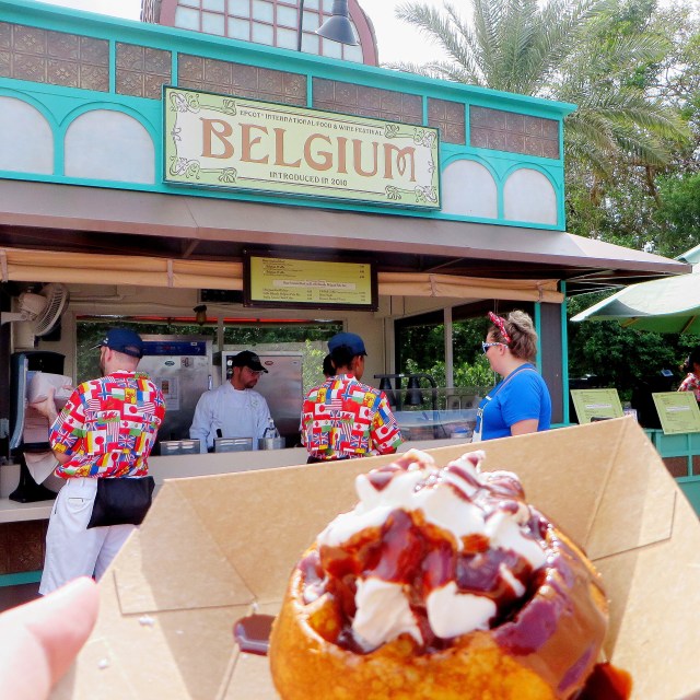 As we walked around the World Showcase, another stand caught our eye, Belgium. I am sure you can guess what this stand had, Belgium Waffles of course! In addition, to two different types of Belgium Waffles, they also had a savory dish. The waffle options included chocolate topping and strawberry topping. I tried the waffle with chocolate sauce and whipped cream. It was so good! Probably one of the best Belgium Waffles I’ve had. If your looking for a sweet treat, try this!