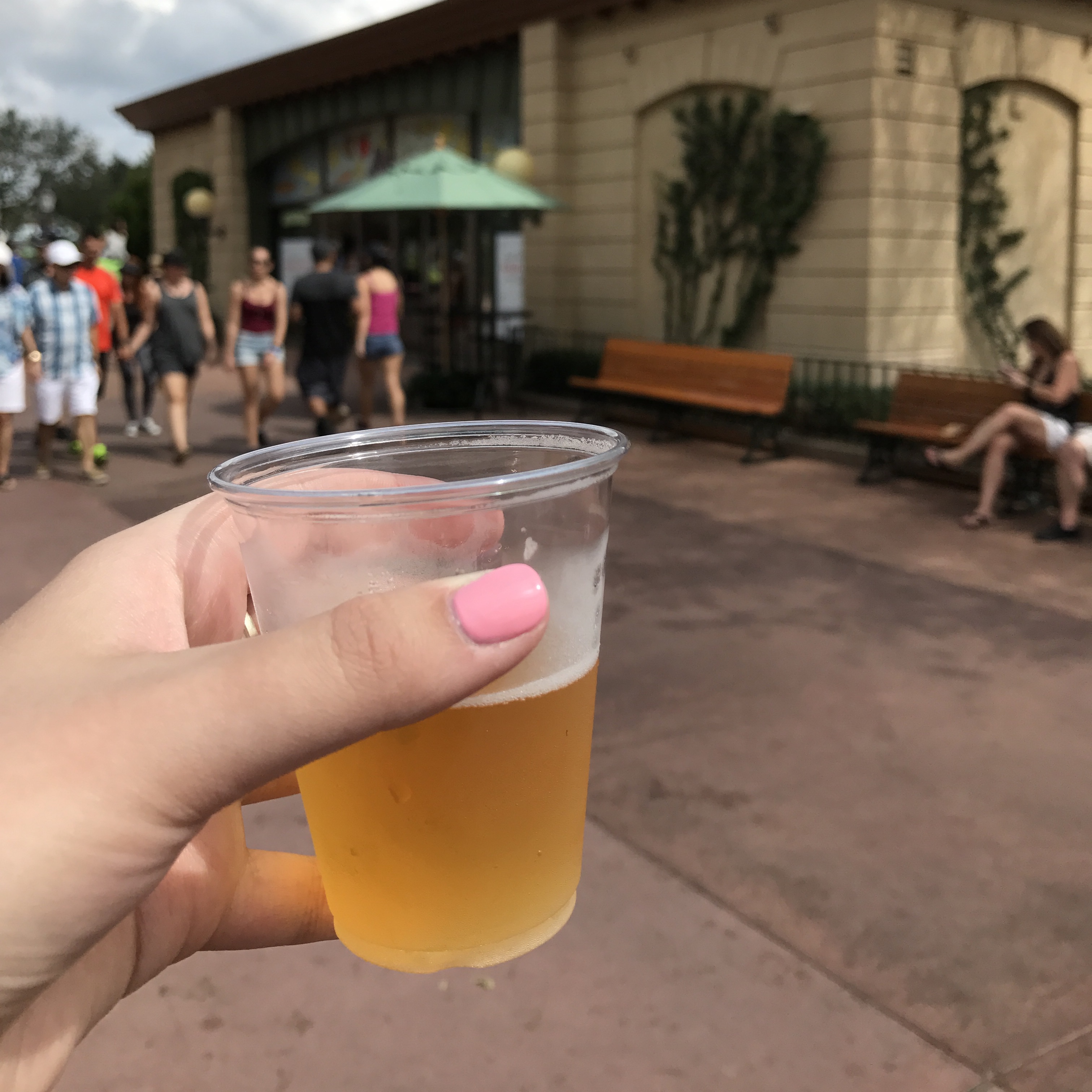 Located towards the left of the World Showcase was the Farm Fresh booth. I can’t find anywhere online if this booth is still in the festival this year, but Farm Fresh featured local Florida items. My dad had the Crispy Chicken with Cornbread and Gravy. He really enjoyed it and said it was delicious! At this booth, I tried the Florida Orange Groves Mango Mama Wine. It was a sweet wine, but it was good. I always enjoy trying local or unique items. Unfortunately, I don’t think the booth is around this year but there are still plenty of other delicious foods to try.