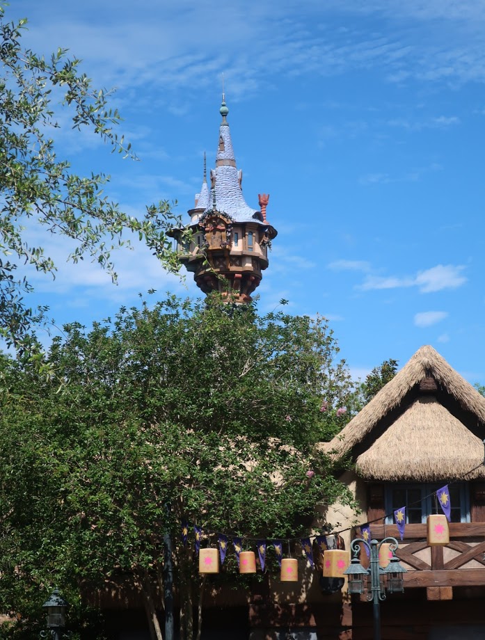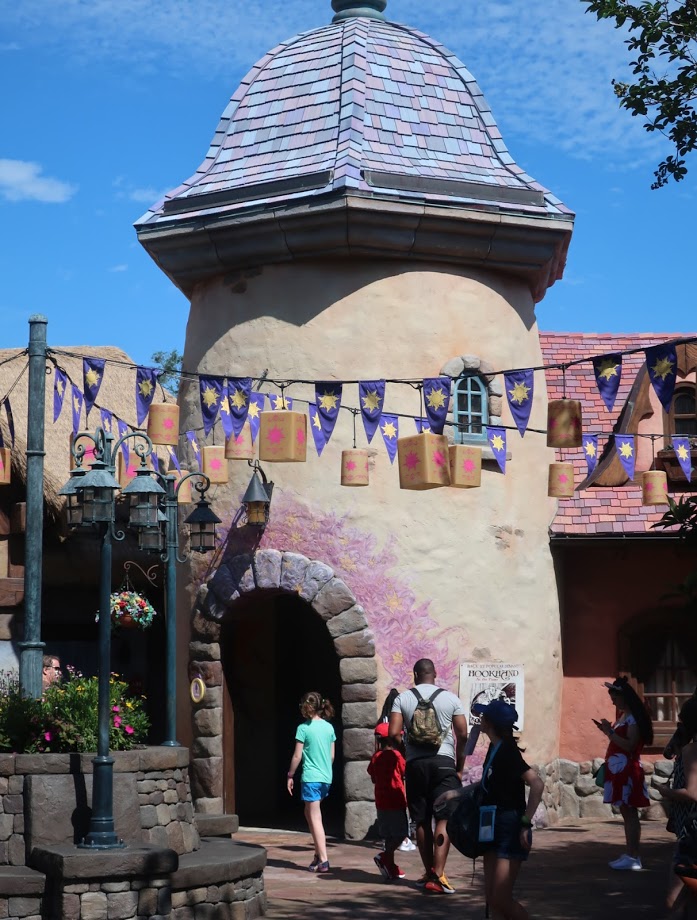 ll World and Peter Pan’s Flight is a rest area dedicated to the 2010 film Tangled. The area features her famous purple flag hanging overhead, Rapunzel’s tower and wanted posters for Eugene Fitzherbert. It is honestly such a pretty area even for a quick stop.