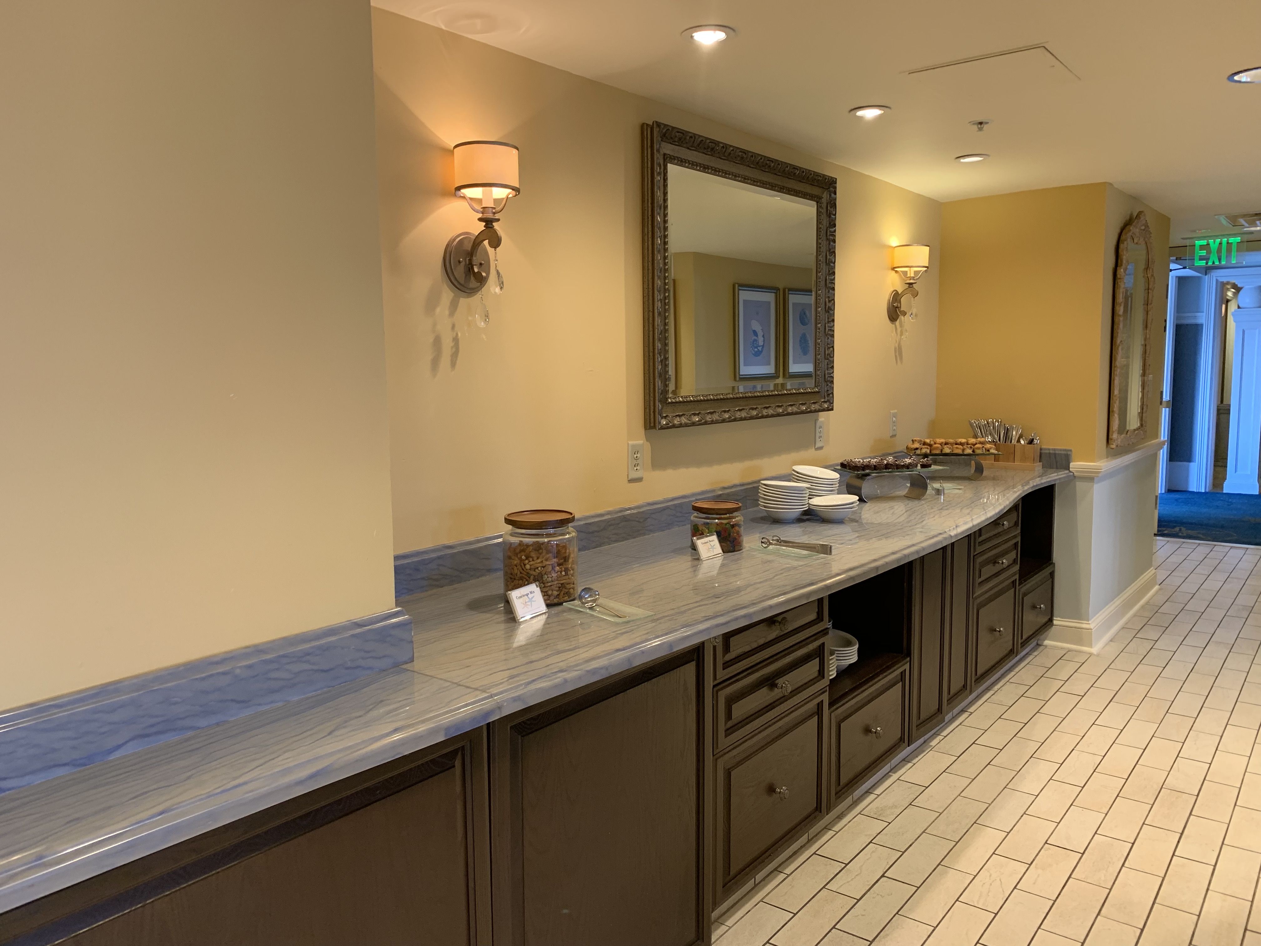 At 6:30am, coffee service begins for guests in Club Level. It was so great to have coffee so easily accessible down the hall until 10:30am. During our stay, we went into the lounge a few times while breakfast and snack service were happening. 2 of the mornings there were Crustless Bacon and Cheese Quiches which were delicious as well as Oatmeal, Bagels and Pastries. One morning, we actually went to the Marketplace for breakfast (to use quick service credit). We got Bounty Platters and since there were no seats by the Marketplace, we took our meals upstairs. We were definitely not feeling the Bounty Platter breakfast from Beach Club so we ended up eating all of the delicious food available at the lounge, including those delicious Quiches- which made the whole thing totally worth it and we didn’t have quick service breakfast there again. During snack service, there were sugar, oatmeal and chocolate chip cookies as well as ice cream, chips and fruit. I really enjoyed having breakfast and snacks easily accessible to me.