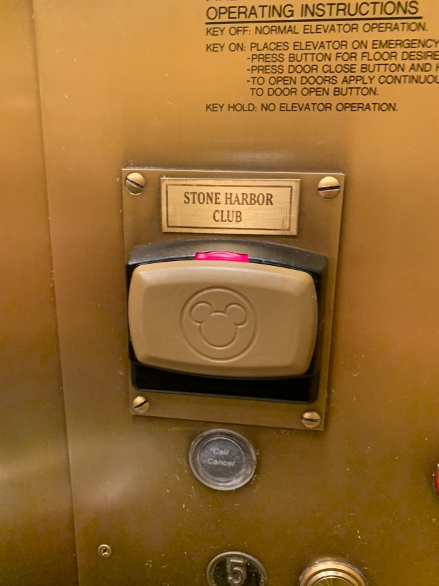 Upon entering the elevators, you will need to scan your Magic Band on the area of the elevator that says Stone Harbor Club. This will automatically illuminate the 5th floor button and whisk you off. When you exit the elevators, you will see one entrance to the club lounge straight ahead of you and the concierge desks to the left.