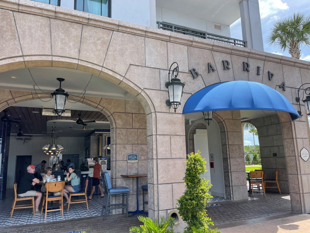 Finally, if a sit-down meal is what you’re looking for, head to Topolino’s Terrace. Offering both breakfast and dinner, Topolino’s has some delicious options and beautiful views. Breakfast offers a character experience, where you can see your favorites, Mickey, Minnie, Donald and Daisy in their Mediterranean best. They offer options like Two Eggs Any Style, Sour Cream Waffles and Quiche Gruyere. At breakfast, you are able to order as many entrees as you’d like. Dinner at Topolino’s is not a character experience, but offers some unique dishes like fresh made pastas, fish and steaks. Plus, be sure to head onto the balcony outside to see some amazing views of the Riviera, Caribbean Beach, Hollywood Studios, Animal Kingdom, Magic Kingdom and Epcot.
