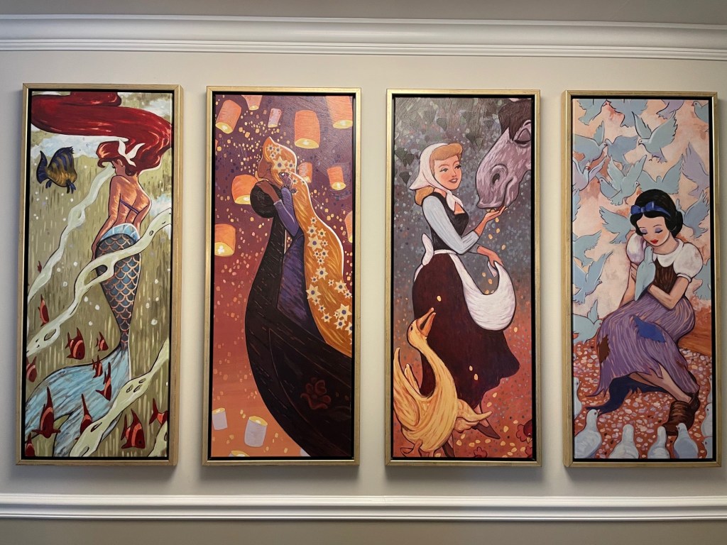 Disney’s Riviera Resort is also home to some beautiful murals as you head to the Skyliner Station. These murals are themed after Tangled and Peter Pan and are popular Instagram photo spots that extend around the ceiling.. If you are visiting, be sure to take a quick picture in front of these beautiful murals.