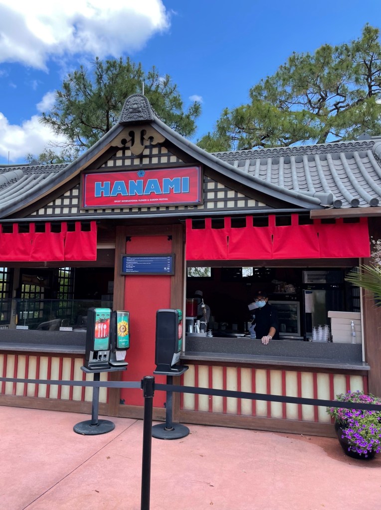 Next, we have Japan. In the Japan pavilion, a Dragon Topiary greets guests on the lagoon side. In addition to the topiary, Japan is home to the Hanami Booth. Guests can enjoy festival favorites of Frushi, Shrimp and Crab and Sake.