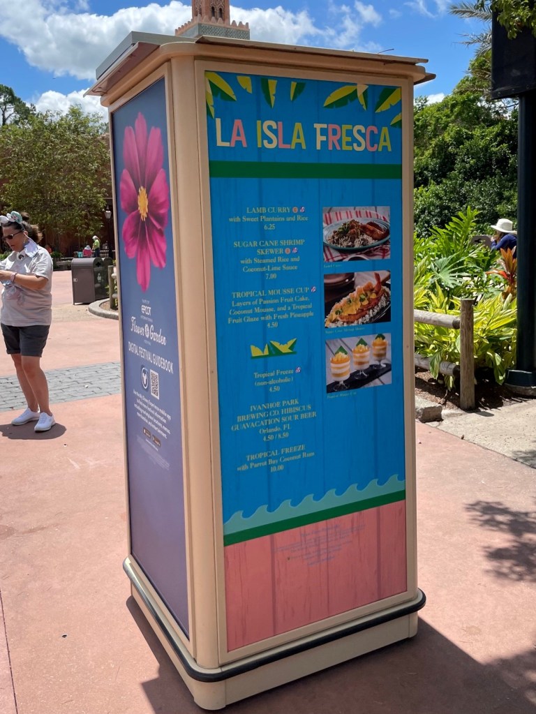 Morocco is not home to a specific topiary but is home to a festival booth, A Taste of Marrakesh. Here, guests can enjoy items like Moroccan Seafood Couscous and Lemon Magdalena Cake. In between Morocco and France lies the La Isla Fresca booth. A festival favorite is at this booth, the Sugar Cane Shrimp Skewers. Other items include the Lamb Curry and the Tropical Mousse Cup.