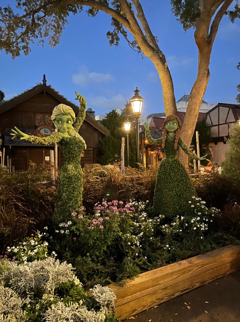 Next up, we have Norway. In Norway, guests are treated to 3 different topiaries, Anna, Elsa and a Troll. There is actually no festival food booth for the Norway Pavilion.