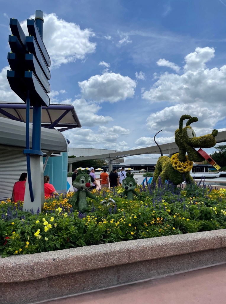 During every Epcot festival, guests can pick up their passport to travel around the World (Showcase). The 2021 Flower & Garden Festival is no exception. This festival passport allows guests to locate character topiaries, identify food menus and even participate in a Garden Graze Challenge. Another essential before starting your journey is a festival gift card. These are super helpful as you can load a designated amount of money and just keep that around your wrist. It’s also great if you’re keeping track of a budget and just want to spend a certain amount of money on your festival treats. I personally like the method when participating in the festival as you don’t have to keep taking out your wallet.