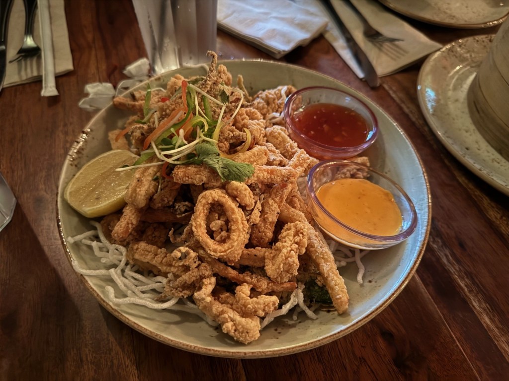 After the drinks, we ordered some appetizers for the table. We chose the Bang Bang Calamari, which was a crispy battered medley of calamari and vegetables. We also selected the Steamed Pork Pot Stickers. The Calamari was crispy and not fishy at all. The Pork Pot Stickers had a really nice taste that was enjoyed by all. Both appetizers were delicious and were a nice size for our party of three.