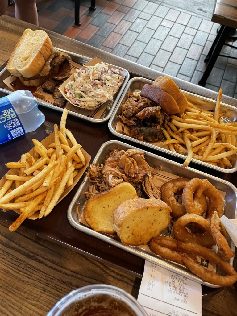 4:45 pm- 5:15 pm: We have dinner at Regal Eagle Smokehouse in the America Pavilion